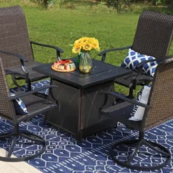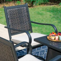 5pc Patio Dining Set With Steel Table With 1.57″ Umbrella Hole & Padded Arm Chairs – Captiva Designs