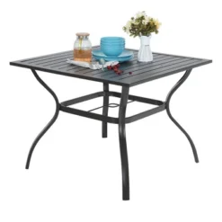 5pc Patio Dining Set With Steel Table With 1.57″ Umbrella Hole & Padded Arm Chairs – Captiva Designs