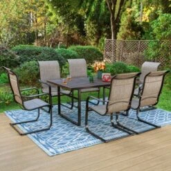 This chair offers comfy feeling when it serves as a dining chair or a conversation seat from Captiva Designs.The seat and back of the dining chair is made of sling fabric.It feels neither too hard nor too soft.The material is breathable.You will not feel tired or uneasy if you sit on it for a long time.Steel frame and powder coating offer the stable and durable applying.C-sping shape and sling fabric give the extra comfy enjoyment.