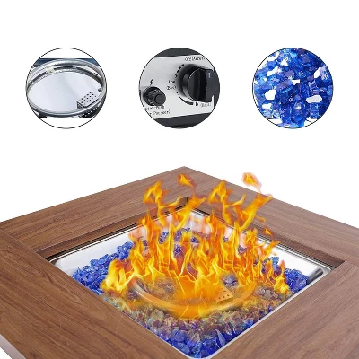 The graceful and elegant fireplace is used outdoor or inddoor.50000 BTUs power will give you a long lasting warmth when gathering aroud it with your family or friends.