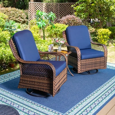 - 1 coffee table,2 swivel sofas