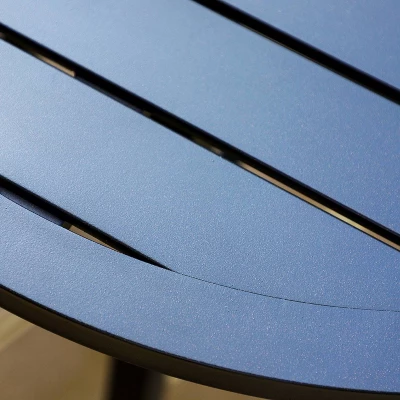 The small side table is made of steel. Matte powder-coated black finish frame, UV and fade resistant. Skid resistant feet for uneven ground and against floor scratching.