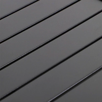 - Modern Elegance with Slat Tabletop: The set features a sleek and contemporary black table with a slat tabletop design, adding a touch of modern sophistication to your outdoor space.