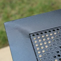 This black steel table offers comfy feeling when it serves as a dining table from Captiva Designs.It accommodates 4 seats around.The steel metal is powder-coated and strong enough for a long time serving.Classic pattern design gives elegant and beautiful look.It is a perfect choice for outdoor and indoor applying.