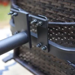 This chair from Captiva Designs is designed and constructed according to the ergonomics. The U-curve armrest ,3 steel bottom brackets and triangle structure supports the stability. Ergonomic curve back offers the extra comfort when you sit on it.Black and selective all-weather PE rattan and powder-coated steel frame jointly present the elegant and graceful look. It serves perfectly for outdoor or indoor.