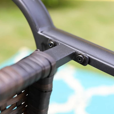 This chair offers comfy feeling when it serves as a dining chair or a conversation seat from Captiva Designs.The seat and back of the dining chair is made of PE rattan.A cushion is placed on the seat.You will not feel tired or uneasy if you sit on it for a long time.Steel frame and powder coating offer the stable and durable applying.
