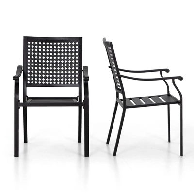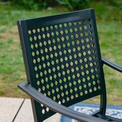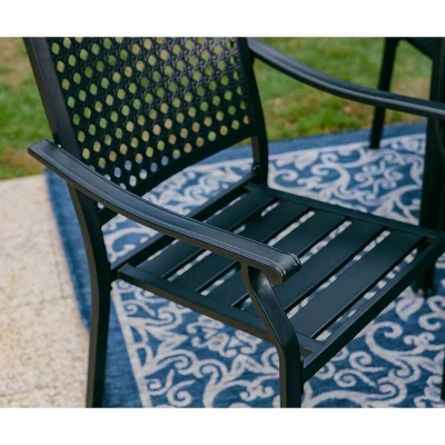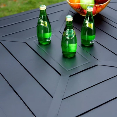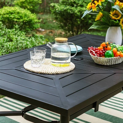 7pc Outdoor Dining Set With Steel Chairs & Large Metal Rectangle Table With Umbrella Hole – Captiva Designs