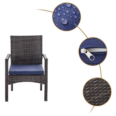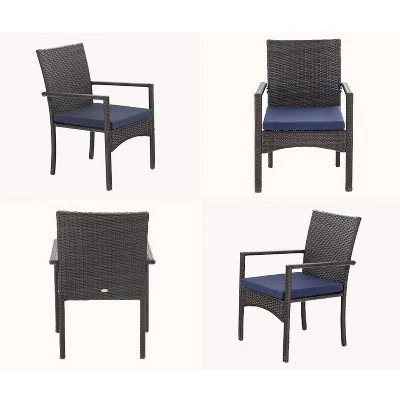 The patio dining chairs are made of PE rattan and strong steel frame, which is durable to withstand snow, rain and wind. Also, the perfect combination of rattan and steel can withstand the test of time and high temperatures well for long time using.