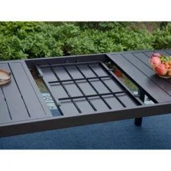 This premium steel extensible table offers comfy feeling when it serves as a dining table from Captiva Designs.It accommodates 6 or 8 seats around.The steel metal is powder-coated and strong enough for a long time serving.Classic pattern design gives elegant and beautiful look.It is a perfect choice for outdoor and indoor applying.