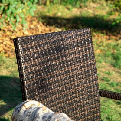 This chair offers comfy feeling when it serves as a dining chair or a conversation seat from Captiva Designs.Steel frame and selective all-weather PE rattan offer the stable and durable applying.The cushions give the comfy enjoyment when sit on it.