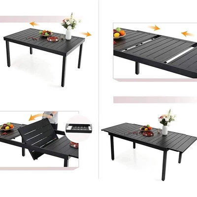 This premium steel extensible table offers comfy feeling when it serves as a dining table from Captiva Designs.It accommodates 6 or 8 seats around.The steel metal is powder-coated and strong enough for a long time serving.Classic pattern design gives elegant and beautiful look.It is a perfect choice for outdoor and indoor applying.